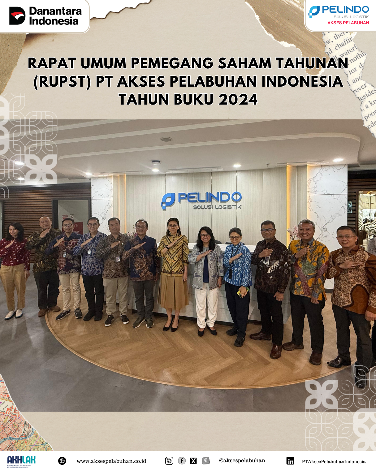 PT Akses Pelabuhan Indonesia (API) telah melaksanakan Rapat Umum Pemegang Saham (RUPS) terkait Persetujuan Laporan Tahunan dan Pengesahan Laporan Keuangan Tahun Buku 2024, pada hari Selasa, tanggal 24 Juni 2025 di Ruang Rapat Akhlak, Lantai 13, Pelindo Tower, Jakarta.