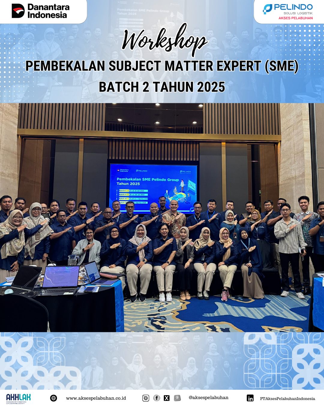Jakarta, 4 Agustus 2025. PT Akses Pelabuhan Indonesia (API), anak perusahaan dari PT Pelindo Solusi Logistik (SPSL), turut berpartisipasi dalam kegiatan Workshop Pembekalan Subject Matter Expert (SME) Batch 2 Tahun 2025 yang diselenggarakan oleh PT Pelabuhan Indonesia (Persero) pada 29–30 Juli 2025 bertempat di Pelindo Tower, Jakarta Utara.